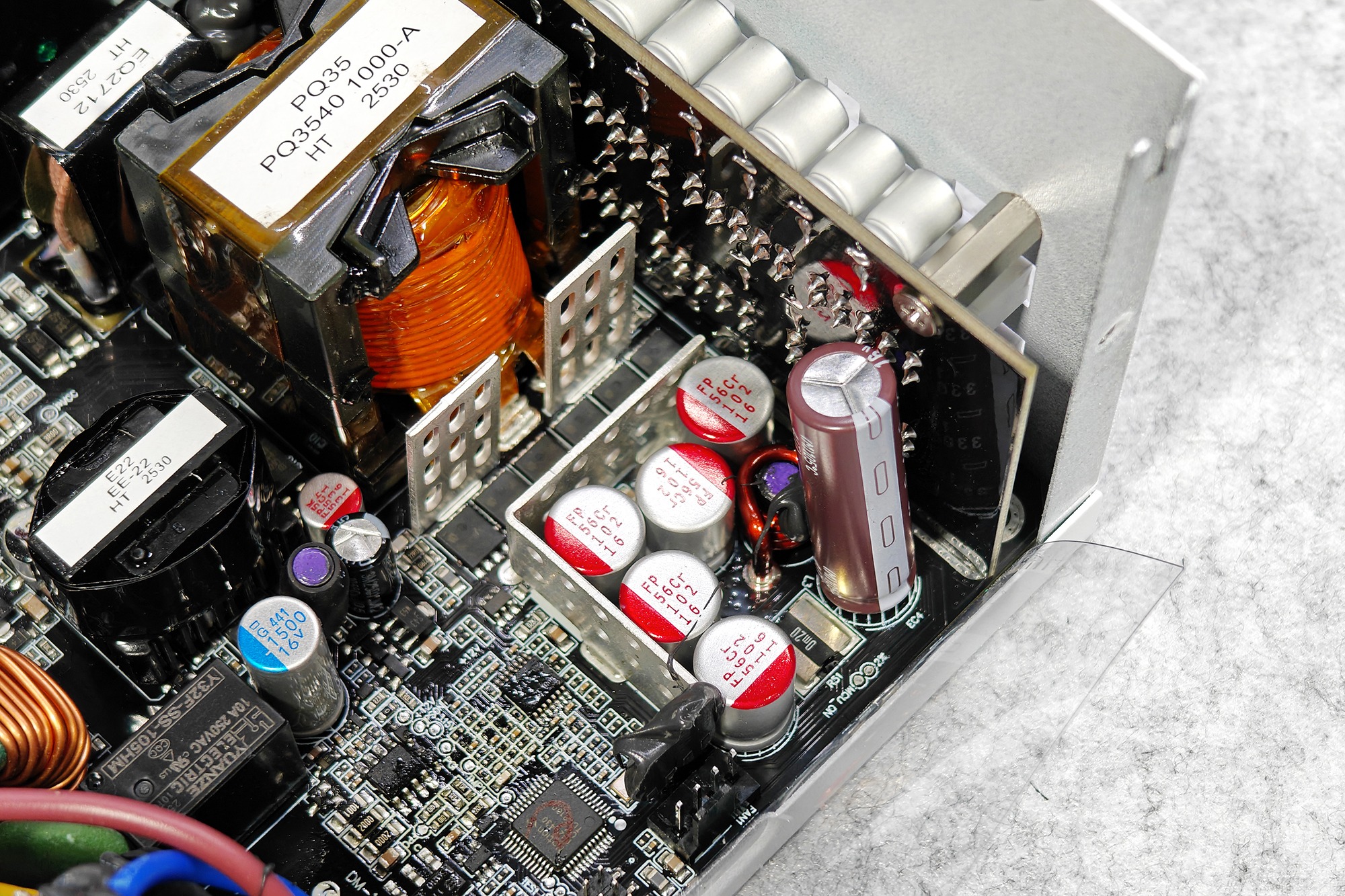 电源采用主动PFC+半桥LLC+同步整流+DC-DC成熟可靠的架构方案,内部用料上乘,选用日系固态电容和电解电容,细节做工不错,符合ATX3.1标准和PCIe5.1规范,并通过80PLUS金牌认证,1000W的额定输出功率再加上10年质保服务,不仅能满足高端硬件平台的供电需求,可保障硬件性能得以完全释放,即便未来升级到性能更强功耗更高的硬件,也有充足输出功率进行应对,电源在性价比方面也有一定的优势,进一步降低了整体装机成本。