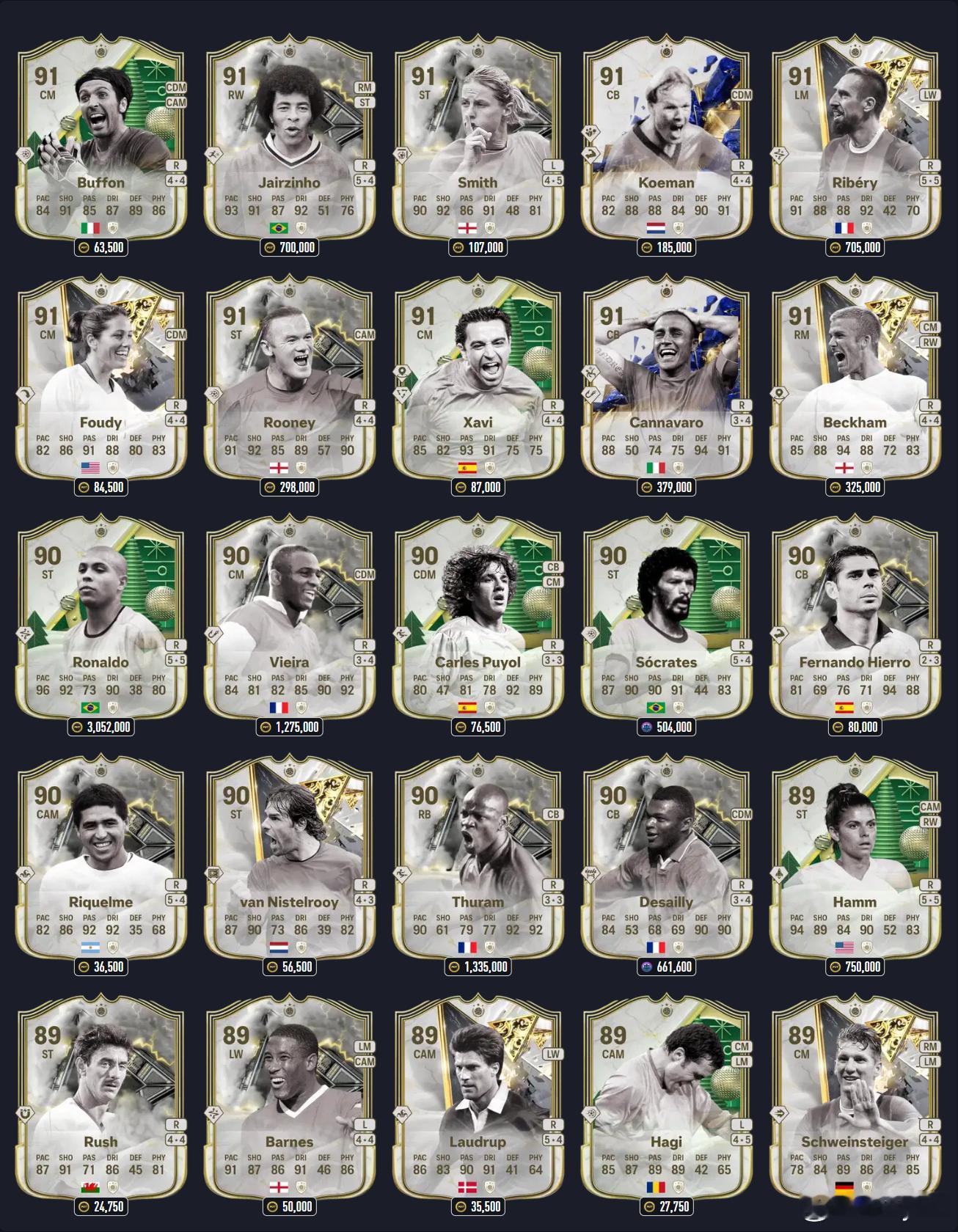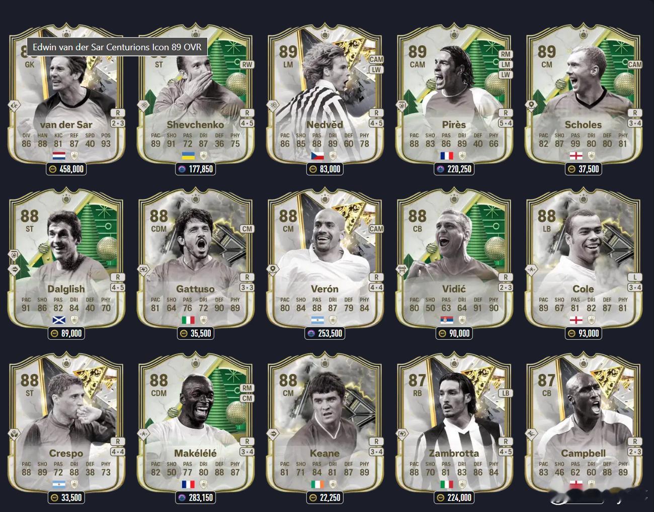 87+ 混合传奇球星挑选SBC卡池。一共65名球员。FC25