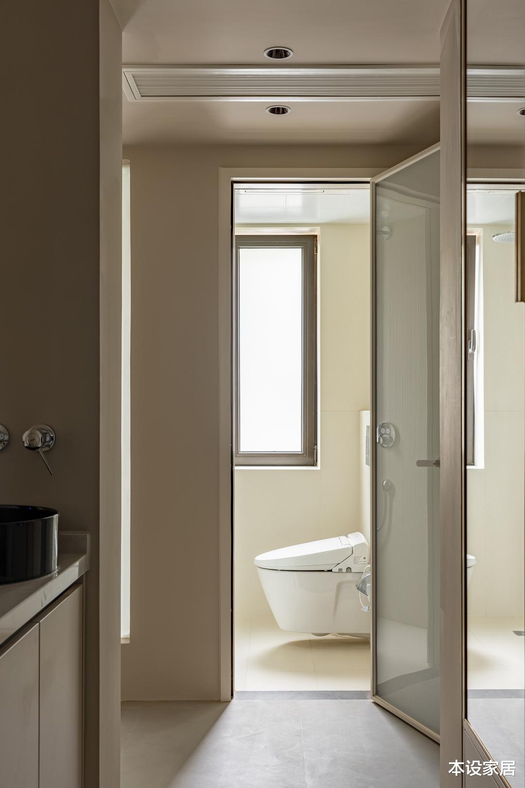 厨房与卫生间的局部隔墙,采用弧形的磨砂玻璃,这样不仅采光好,视觉通透,空间看起来也更加柔和。