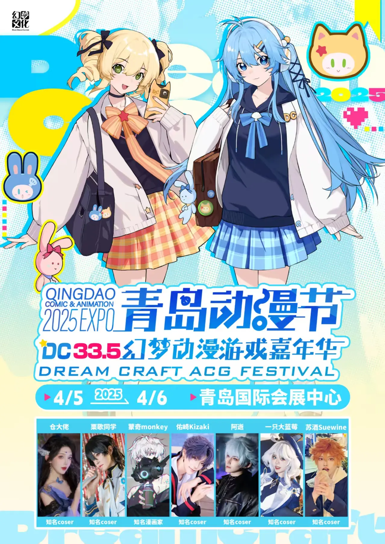 青岛动漫节 青岛dc漫展 DC33.5我来啦!快来和我一起逛展吧~本届嘉宾有仓大佬、栗歌同学、蒙奇monkey、佑崎Kizaki、阿逝无限大的梦想、一只大蓝莓、苏酒Suewine~4月5日至4月6日,让我们一起相约青岛国际会展中心,不见不散!