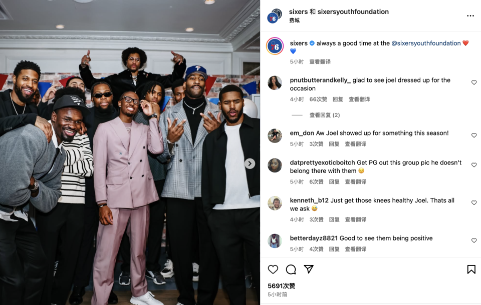 76人与旗下慈善组织举办10周年活动,全队包括恩比德、乔治受邀,名宿艾弗森出席。然而,球迷们对球队的9连败表示质疑。