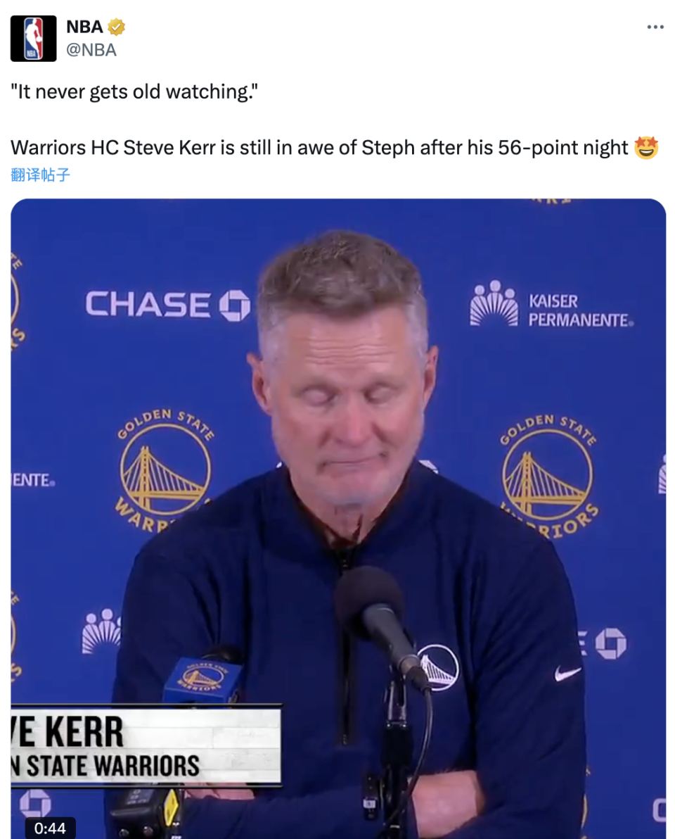 面对库里的三分表演,勇士主教练科尔表示:“你永远不会厌倦看到这一幕。”库里的表现确实令人惊叹。