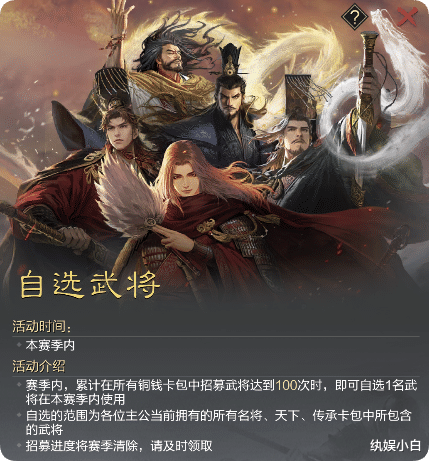 青春服还害怕有的玩家过于“非酋”,死活抽不到自己流派的核心武将,特别给游戏加入了保底武将自选功能。