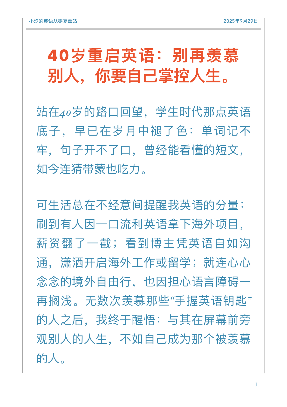 40岁重启英语:别再羡慕别人,你要自己掌控人生