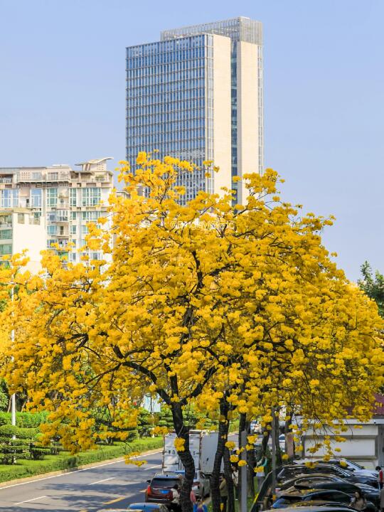 尤其大新地铁站A出口附近,树形好看,花朵茂密,随手一拍都很惊艳📷。黄花风铃木的花期不长,估计再过一周就凋谢了,还没去拍的同学这周末赶紧冲[派对R]