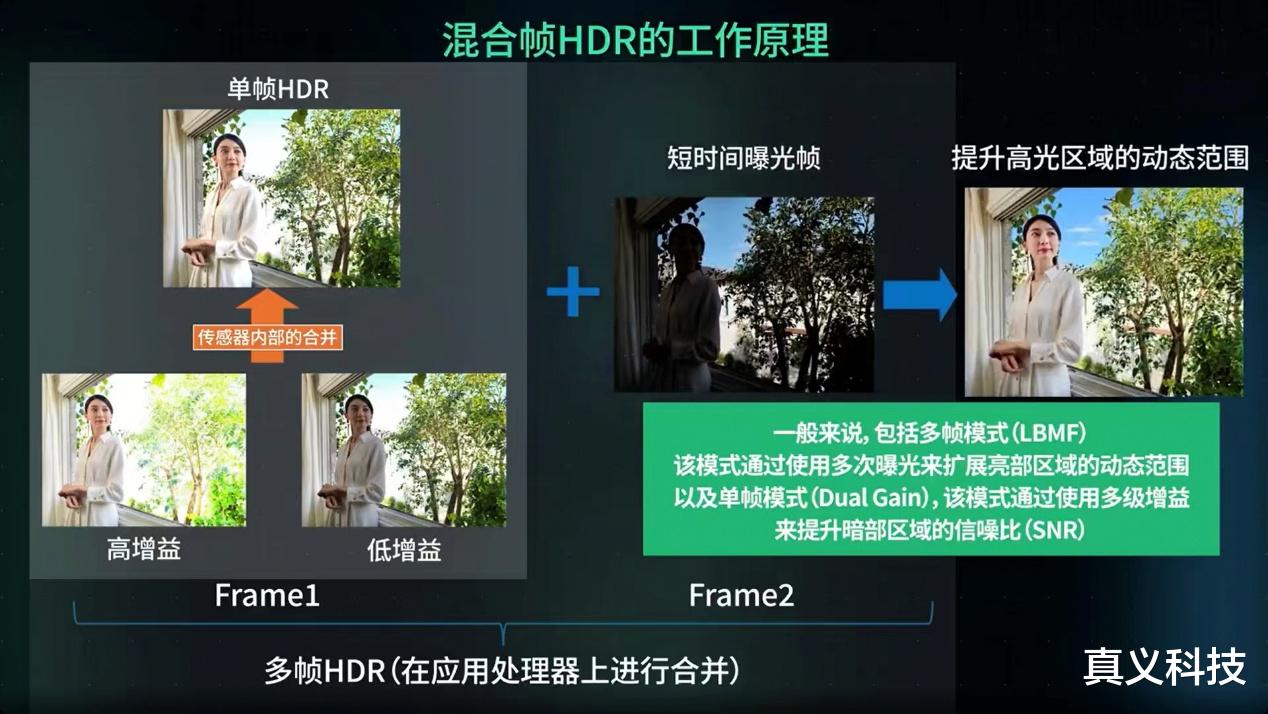 但小米不会告诉消费者,这个动态范围是基于 DCG-HDR 单曝光的两帧融合与多曝光的 VS 超短帧之结合而生(下图所示),从此机圈影像便开始进入卷动态范围的刷分之旅了。