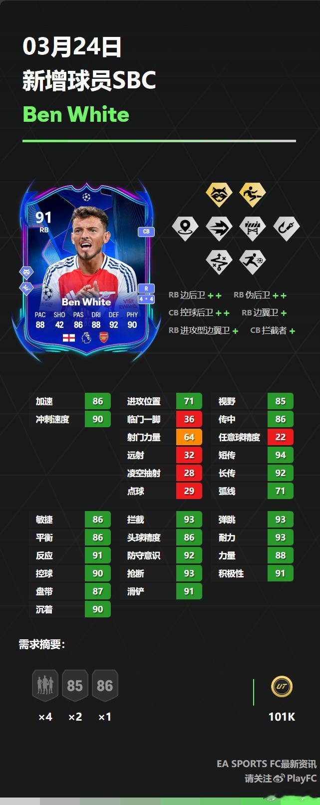 3月24日新增球员SBC:• 索尔斯克亚• 本·怀特FC25