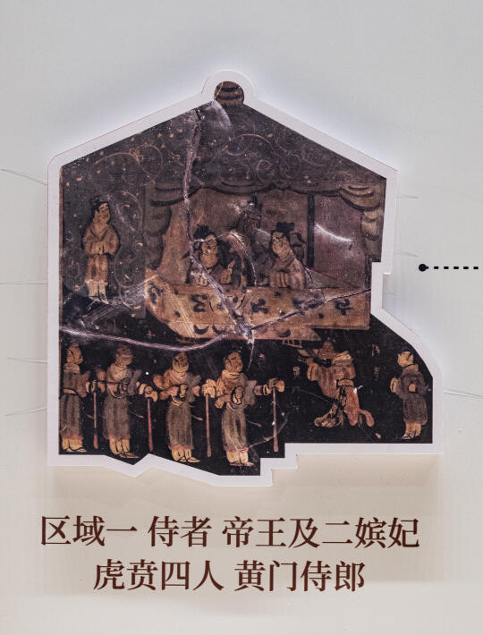 漆案绘制的人物,如果要对应历史上的真实皇帝,学者推测可能是汉成帝,左拥右抱着赵飞燕和赵合德姐妹,而被冷落在一边惨遭调戏的可能是许皇后。