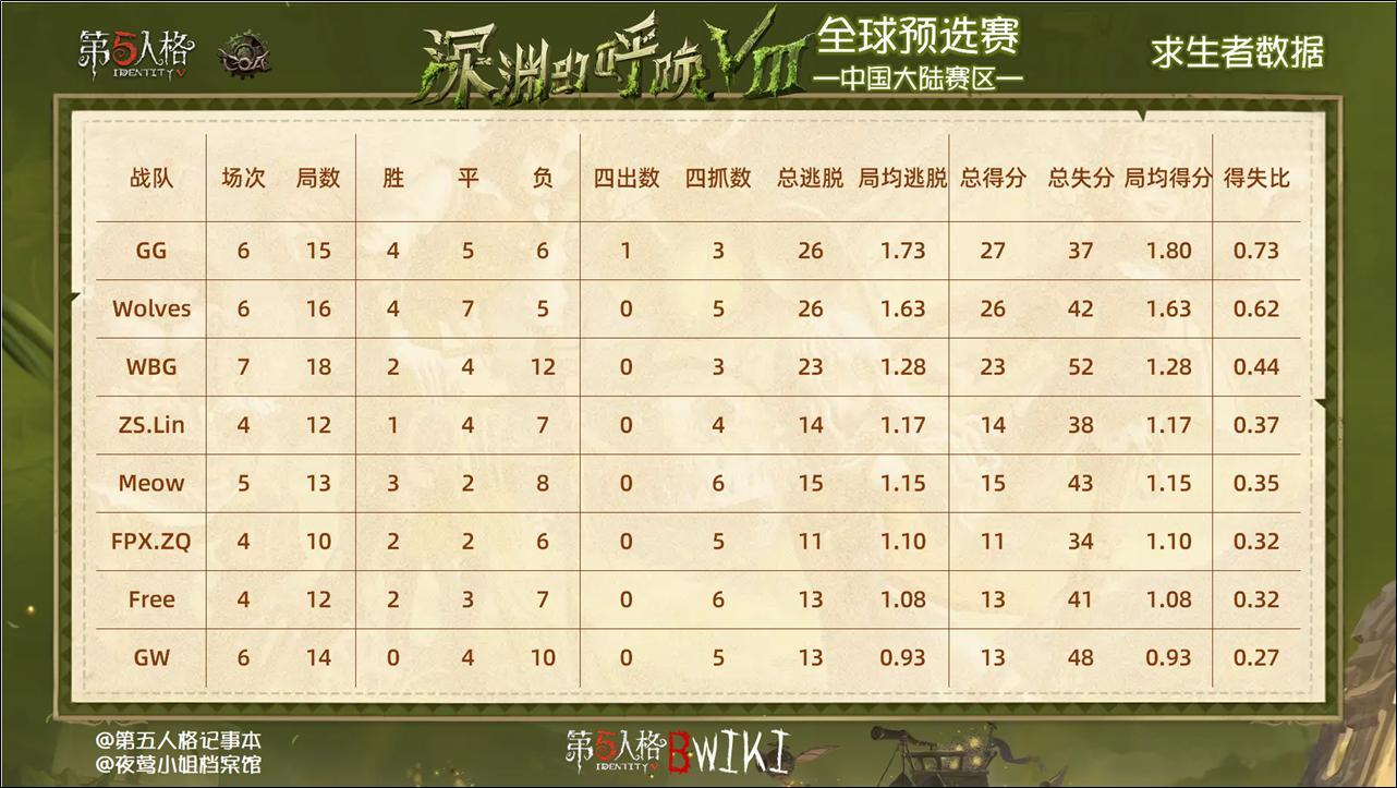 ※搬运请注明数据来源:第五人格BWIKI,数据发布账号