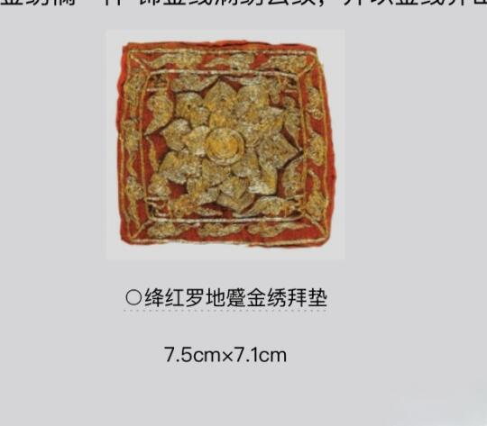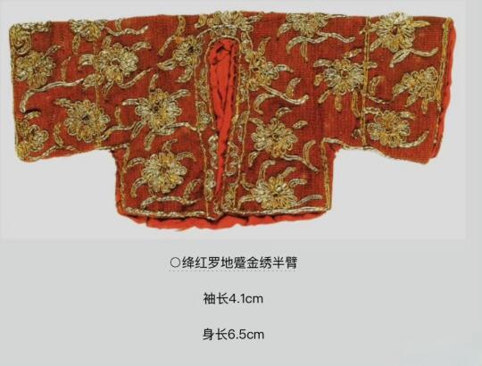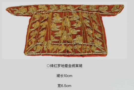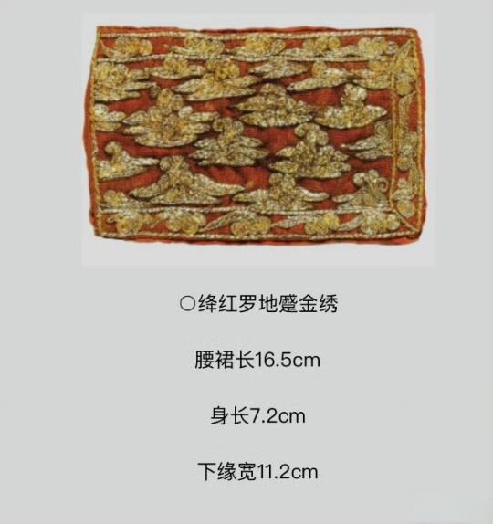 蹙金绣mini小服装,出土位置就在捧真身菩萨座下的壶门座盝顶黑漆函内,五件一套。捧真身菩萨带底座高38.5cm,看这些衣服的尺寸,就是按菩萨的尺寸做的小衣服,高级道具玩家,想想就好玩儿。