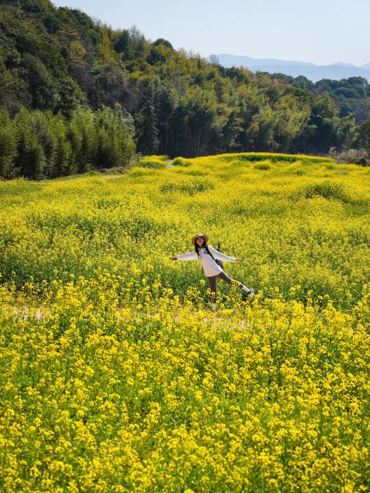 强蛟镇的风景真是令人惊喜!碧海蓝天,遍地花开!从加爵科村开始,一路都是好风景。加爵科村有祠堂古戏台,山顶的孤山古院别致有趣。下山后又遇见了花的海洋,油菜花、梨花、李花、樱花、桃花,令人目不暇接。骆家坑村的绣球花还没开,但村子里也很休闲好看。小森glamping营地附近的油菜花田,背靠大海,虽然规模没有钱仓那么大,但这么美的地方一个人也没有,也是很惬意的享受了。最后走完环线之后,可以再去民谣大叔咖啡店附近(离我的起点大约500米),欣赏一下强蛟镇海边最出片、最美的风景。