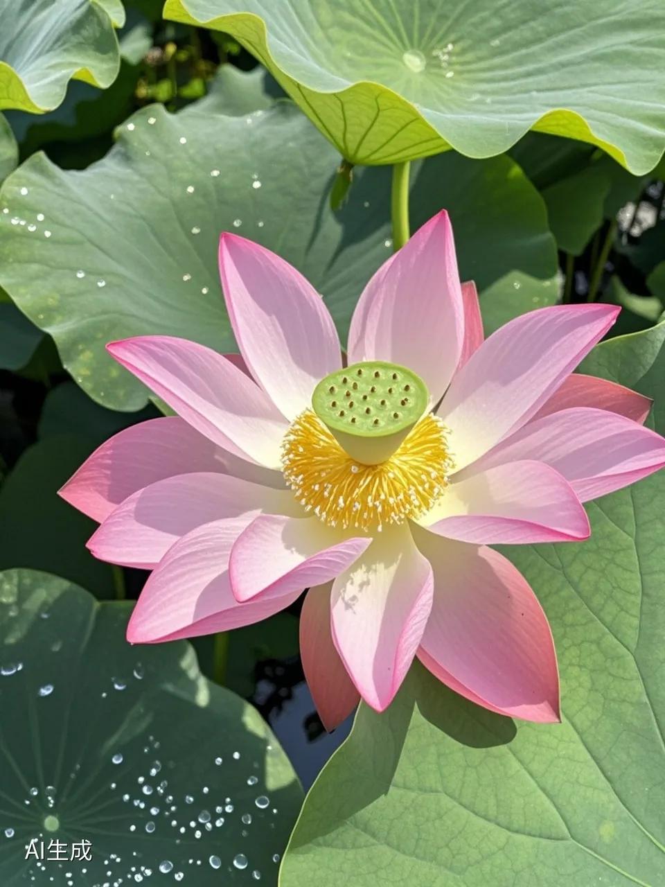 人心向佛拜金塔,岂知世上最多花。树木挺挺傲风雨,池水波波映彩霞!