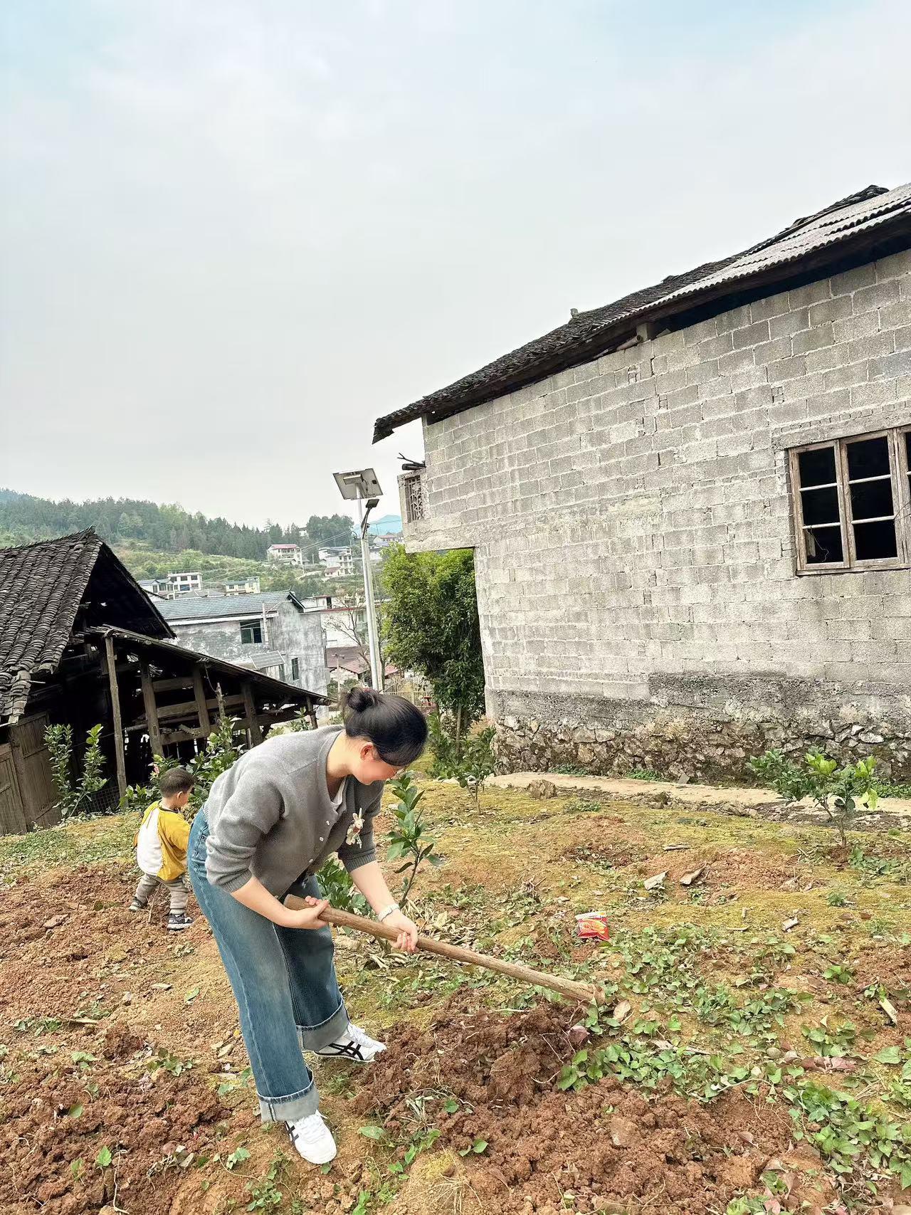 挖一点折耳根,拿回学校和学生换特产。