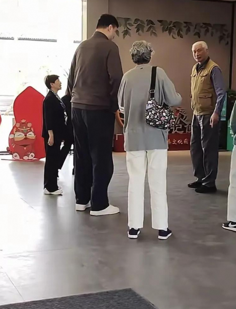 姚明的爸爸姚志源和妈妈方凤娣,他们本身就是很有故事的人物。他们都是篮球运动员,夫妻二人不仅有着令人惊叹的身高,还培养出了姚明这样优秀的儿子。姚明爸爸73岁了,虽然满头白发,但身材板正。他的着装风格很朴素,这也体现出一种老一辈人的低调和务实。姚明妈妈的穿着则是简洁干净,给人一种利落的感觉。 在他们回老家的行程中,我们可以看到姚明对爸妈的孝顺。爸妈年龄大了,姚明陪他们回到家乡,让他们重温故乡的感觉。家乡人对他们一家三口也是热情满满。在景区的时候,姚明和陪同人员的互动展现出他的亲和力。他虽然是篮球界的名人,有着强大的气场,但对待家乡人却很亲切。 姚明的身高在很多场景下都带来了一些有趣的画面。像在栏杆青藤下,他需要低下头才能通过,而其他人在这个空间里却很正常。他的大高个让他走到哪里都备受瞩目,即使是在自己的家乡也是如此。他们一家三口同框的时候,那种家庭的和谐与温馨很让人羡慕,同时也因为身高的原因成为大家关注的焦点。