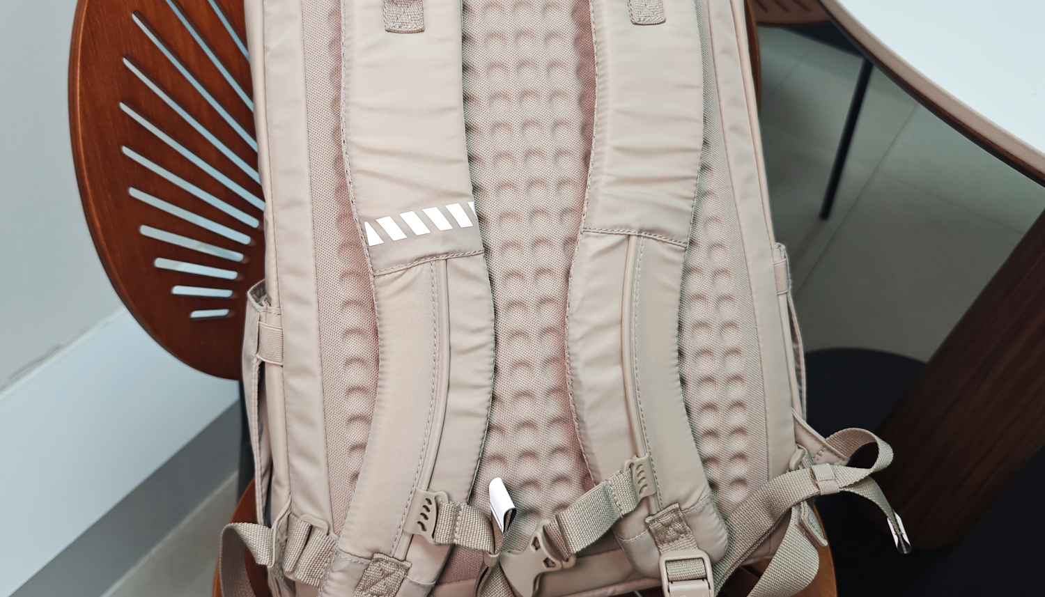 科学护脊设计GMT护脊书包整体重量轻盈,不过其内部仍配置了一条S型铝条。该铝条不仅能使背包更贴合背部,还能发挥出稳固支撑的关键作用。