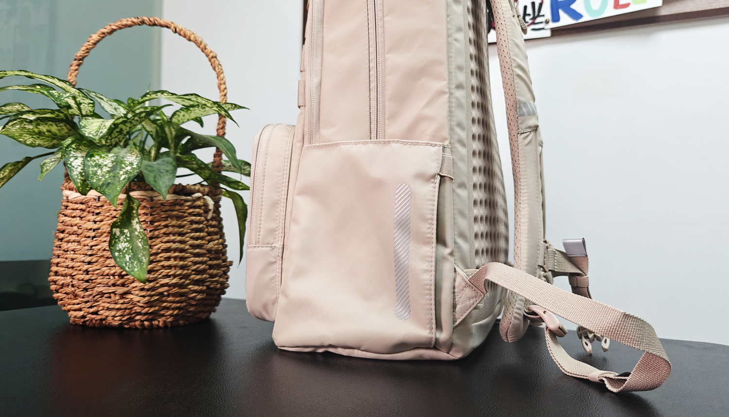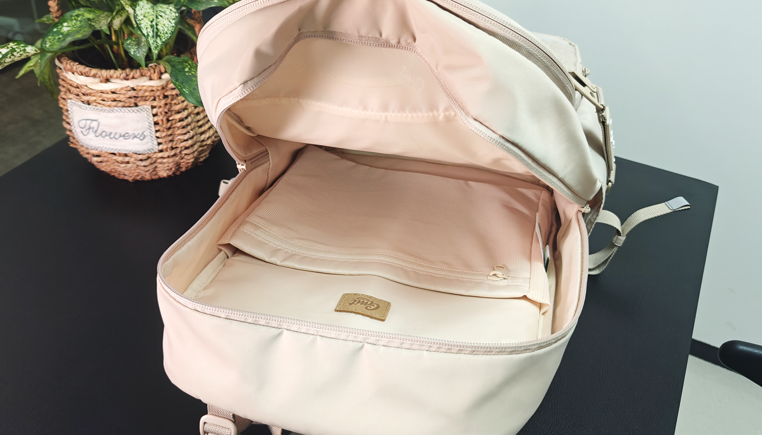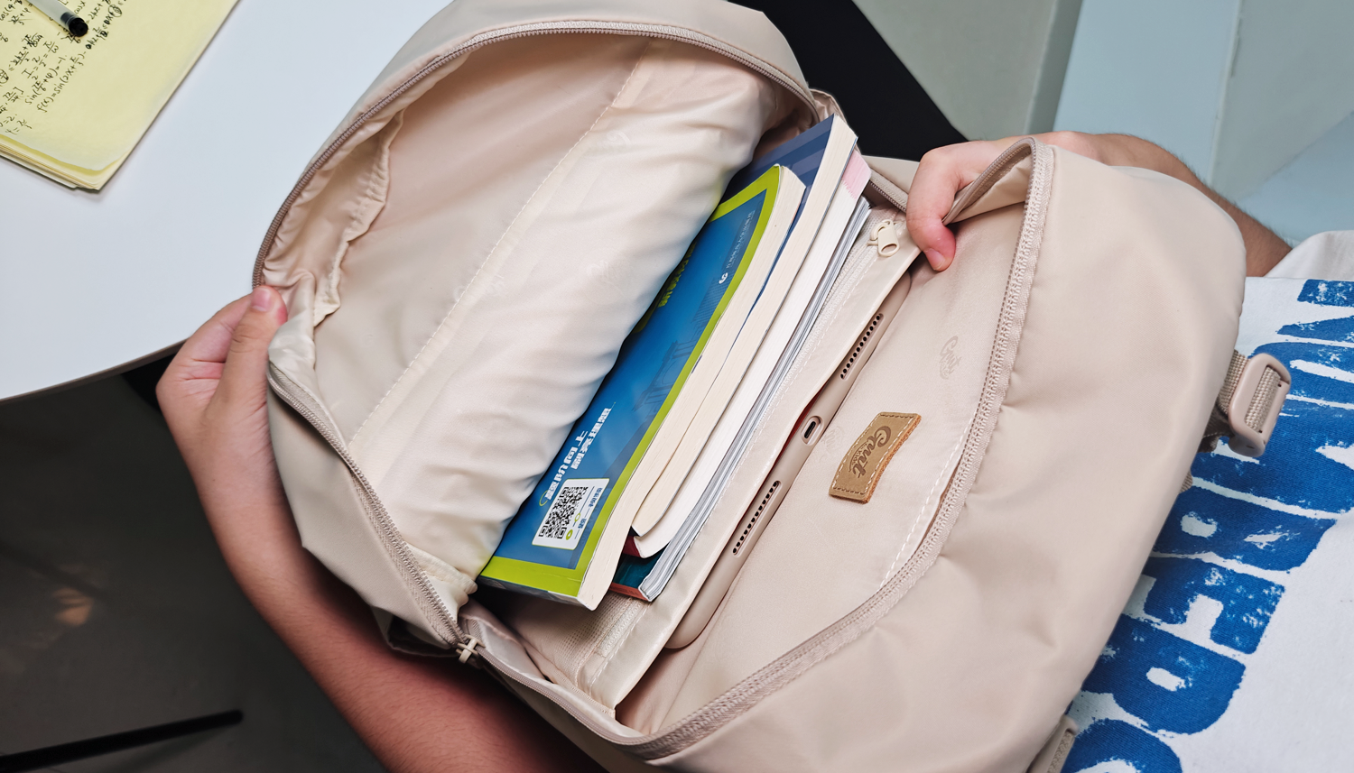 在收纳设计上,书包采用了多隔层科学分区设计,包括主拉链袋、前隔层拉链袋、前脸立体贴袋、侧袋和前脸拉链袋等,仿佛为每一件物品都规划好了专属的“居住空间”。