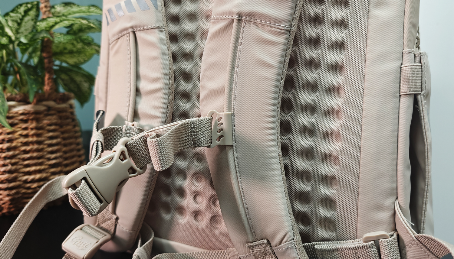 值得夸赞的是,GMT护脊书包还设有胸扣和腰扣承托,可根据孩子的身高进行灵活的位置调整。不管孩子是在悠然行走,还是在尽情奔跑,都能确保书包时刻提供舒适的背负体验。