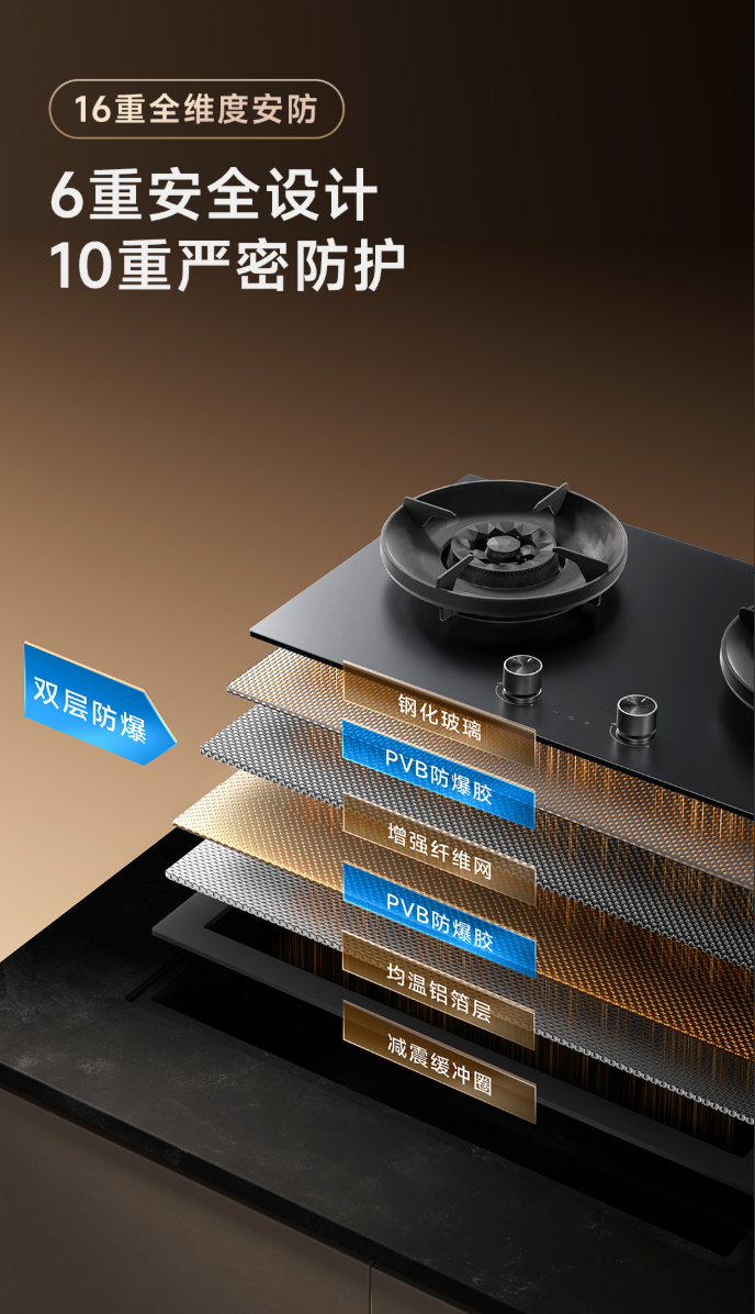 传统灶具常见的玻璃面板,虽然美观,但在高温冲击或外力敲击下,可能存在爆裂风险。于是,各类防爆设计应运而生: