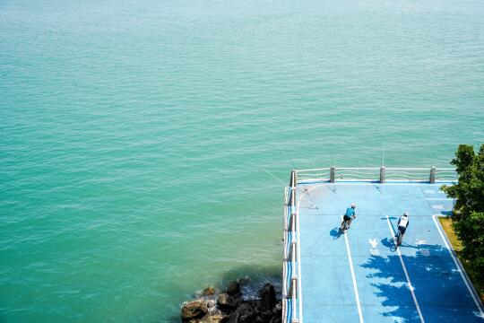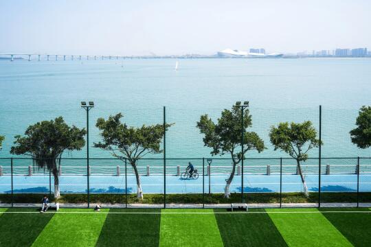 这个海滨球场种草很久很久了 比想象中还要舒服惬意 周末的下午也没啥人 网球足球篮球场 还有一个小型滑板场 海边球场美得让人分心 五缘大桥另一边的游艇帆船码头 是属于厦门的lalaland . 📍散步路线 环岛北路→五缘湾桥墩体育公园→五缘湾游艇汇