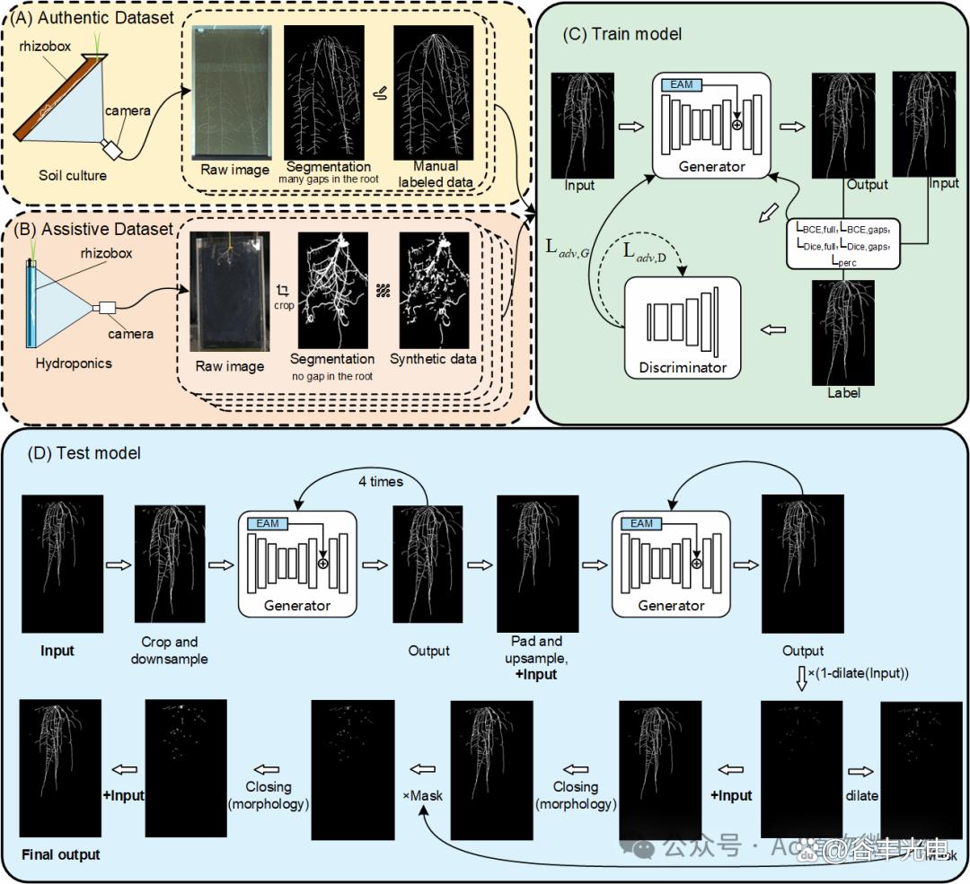分享华中农业大学“青年长江”团队硕士生第一作者在顶级期刊《Artificial Intelligencein Agriculture》(IF=12.7)发表的一篇题为《EU-GAN: A root inpainting network for improving 2D soil-cultivated root phenotyping》的研究论文。