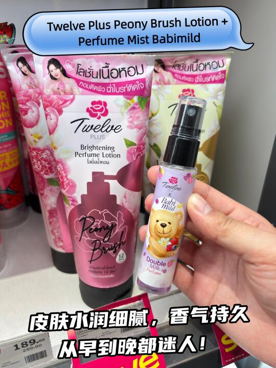 出门前先擦身体乳,肌肤滋润、白皙、香味持久;再喷上 Twelve Plus X Babimild 香氛喷雾,香气就像婴儿爽身粉那样温柔甜美,香一整天也不怕!📍可在 7-11、Watson、Big C 购买