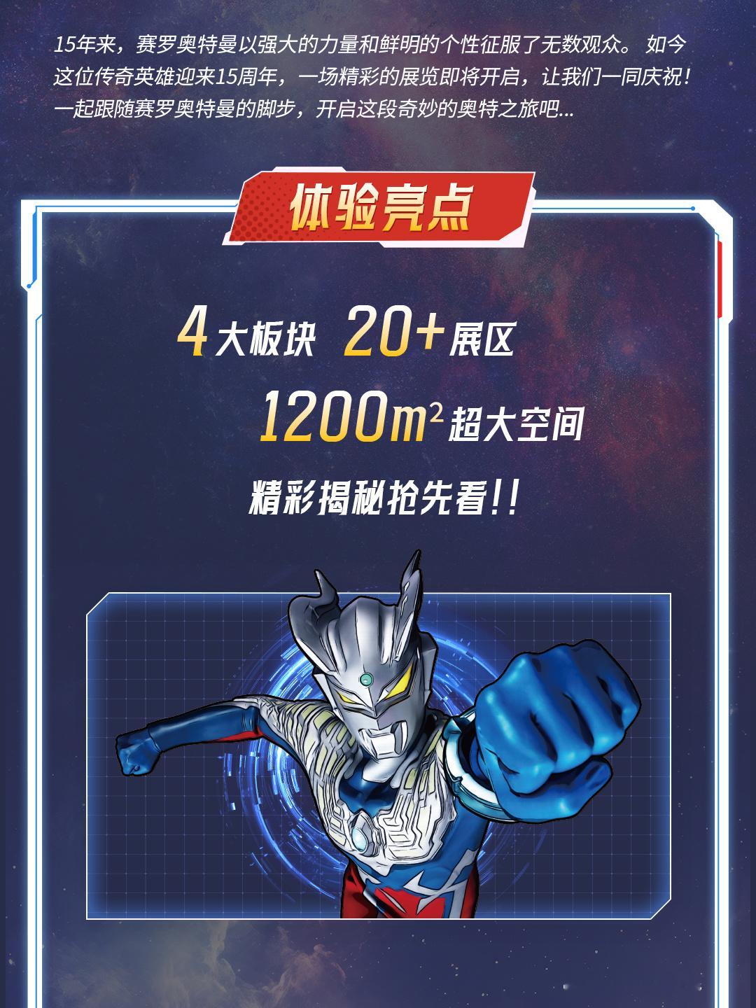 ✨会场分为4大板块回顾赛罗15年来的历程,20大展区带你走进赛罗奥特曼的世界。