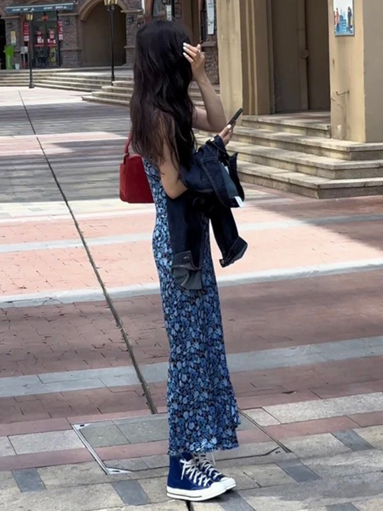 法式浪漫蓝碎花,五一出游必备,显瘦显高,拍照超上镜,仙气飘飘裙子