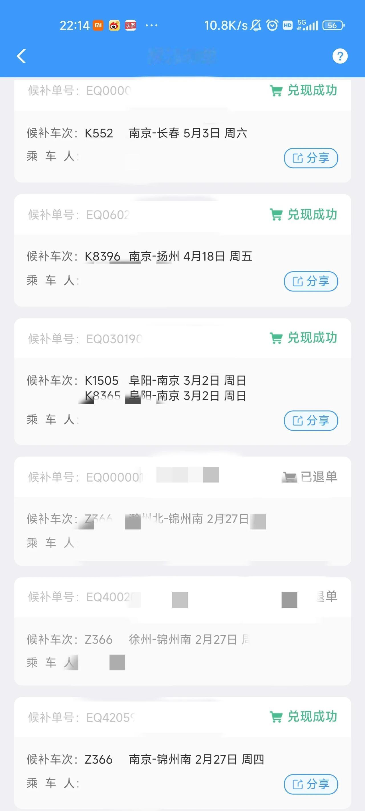 根据我的抢票经验,分段乘坐能很大提高抢到票的概率,所以我又取消了12306的候补订单,转投第三方软件。