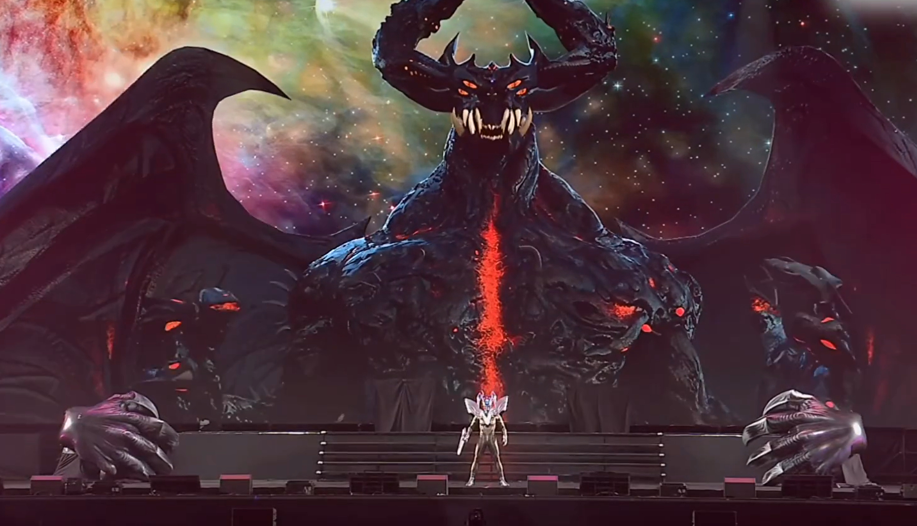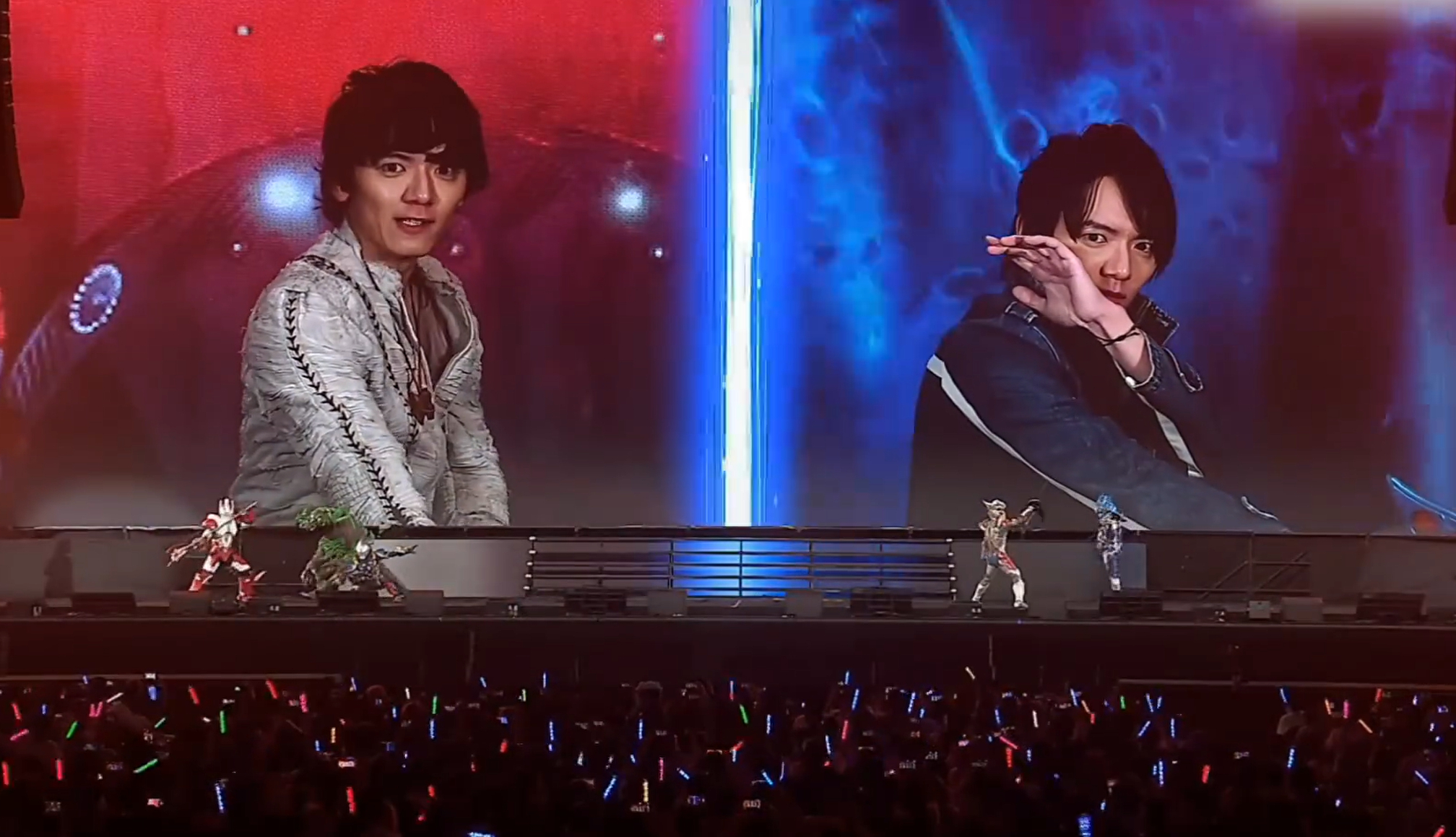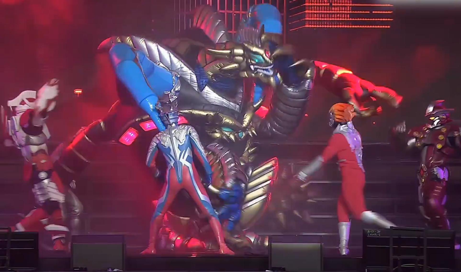 舞台大LED屏幕大、有人间体演员客串、战斗曲有歌手现场演唱。
