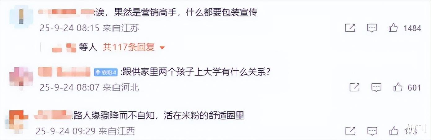 到了9月末,口碑颇好的雷军,也在年度演讲中翻了车。过往雷军的公开演讲,是小米最好的宣传。这一次,因为一个“同时供两个孩子上大学”的类比,网友们纷纷表示听不下去,无法共情,雷军由此进入登味之列。
