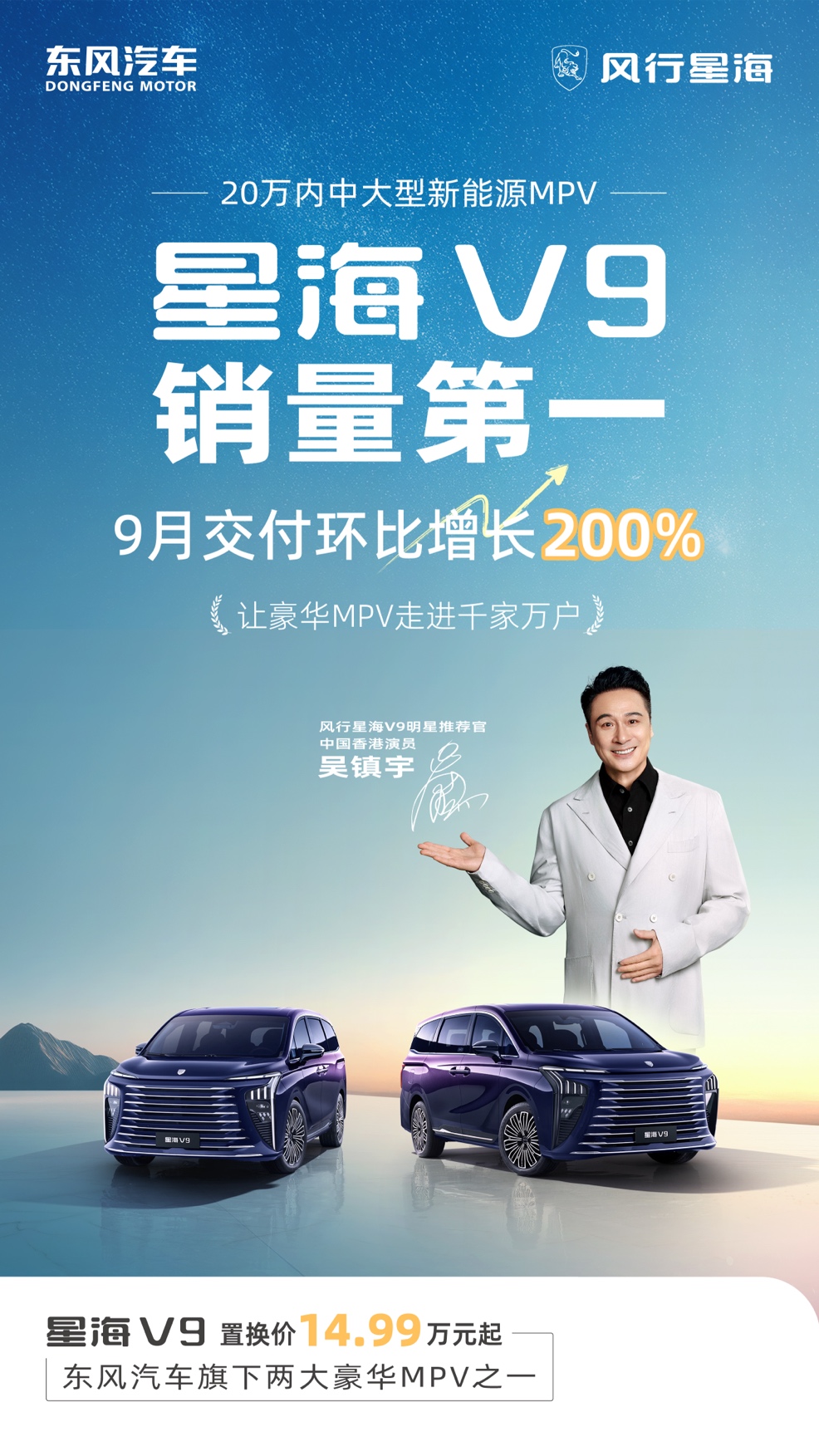 从销量数据来看,东风风行在 9 月交出了一份堪称惊艳的答卷。全产品矩阵 9 月交付量达到 10092 台,同比增长 55%,环比增长 56%。在竞争激烈的汽车市场中,这样的增长幅度并非偶然,而是品牌长期深耕产品、优化服务的必然结果。更值得关注的是,作为东风汽车旗下两大豪华 MPV 之一的星海 V9,在 9 月交付量环比激增 200%,并成功登顶 “20 万内中大型新能源 MPV” 细分市场销量第一的宝座。这一成绩不仅打破了该细分市场的原有格局,更让星海 V9 “国民好车” 的产品标杆形象深入人心,成为消费者在选购中大型新能源 MPV 时的优先选择。