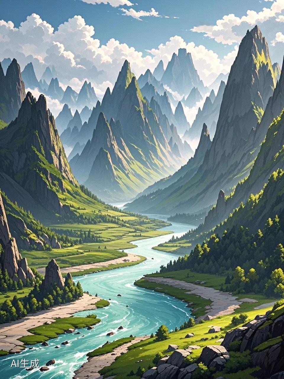 巍巍喜玛耸西藏,条条细流汇六江。奔腾万里不停竭,国内国外向四方!
