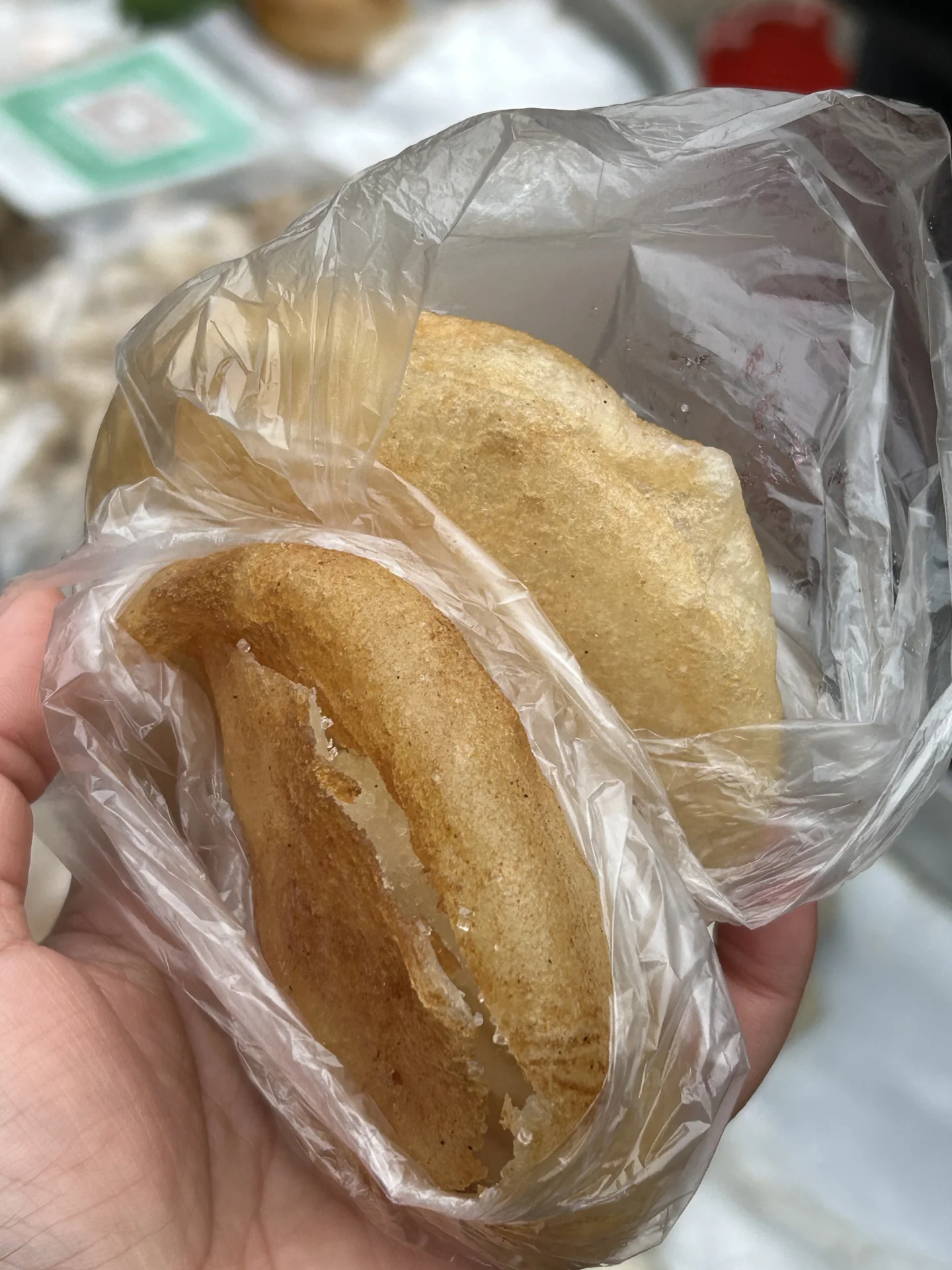 路上看到一个阿姨在挑着卖 外皮是炸过的,里面包了年糕,糯叽叽好好吃啊😭