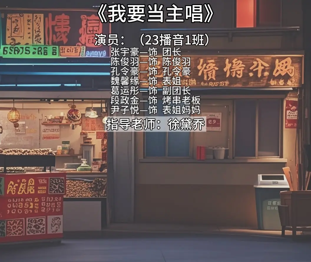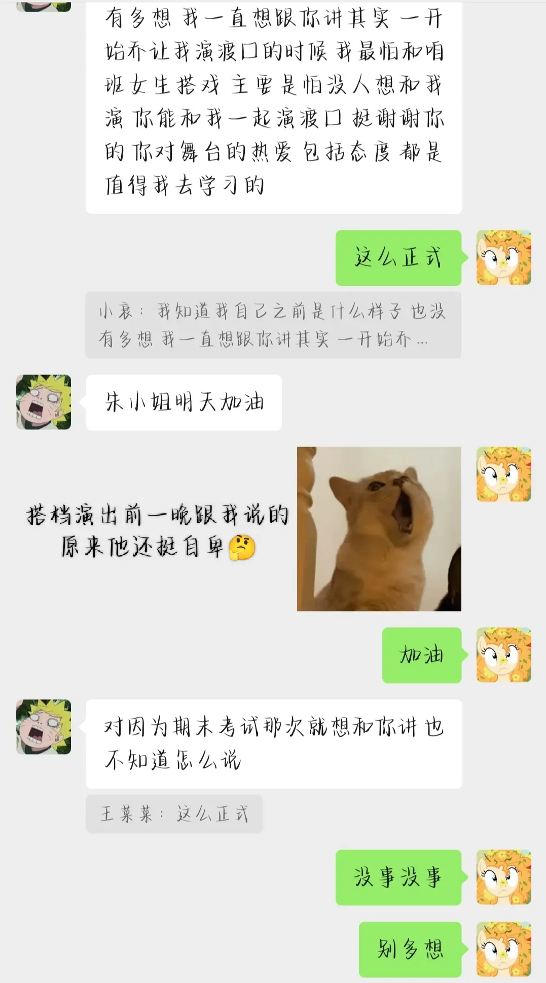 还有——感谢两位老师 感谢两位老师 感谢两位老师(重要的事情说三遍)每一位参与的人都很棒 很有担当。这可能是在艺校最后一次演小品 ,算是圆满落幕了,怎么说呢…
