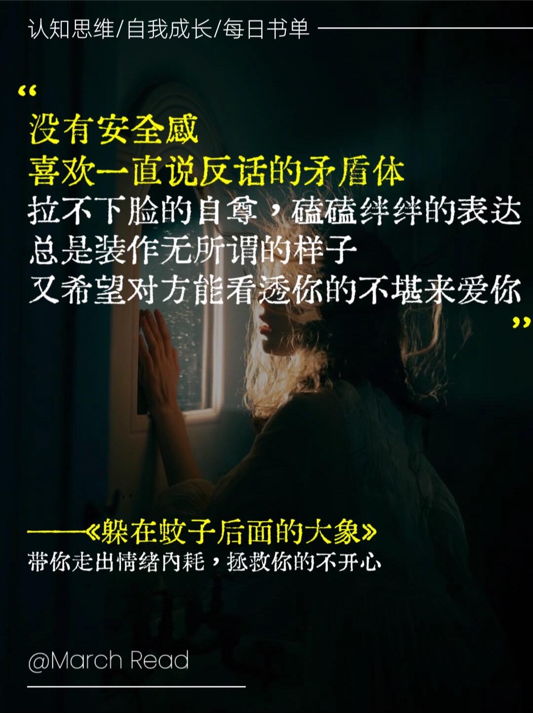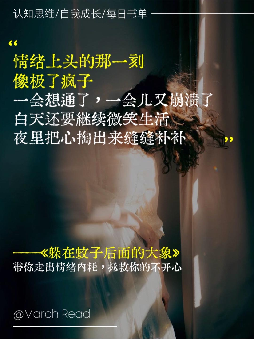 “其实所有不愉快的情绪背后,都隐藏着未被解决的需求,那些蚊子般的小事背后。隐藏的是我们曾经遭遇的内在创伤,或许看起来只是不值一提的小事,却成为大象般,足以压倒我们。”