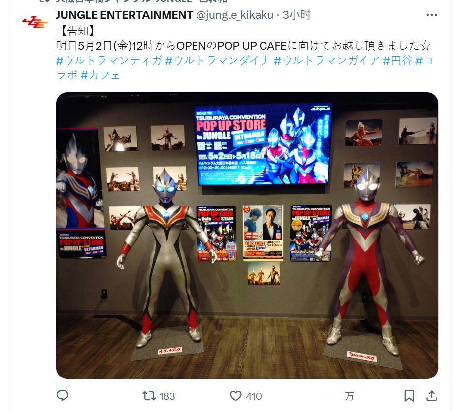 咖啡店会场内将设立迪迦奥特曼与邪恶迪迦的立像,以及一些剧照的展示。同期在大阪日本桥Jungle还有特制周边的贩售。