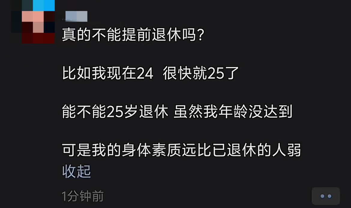 请问,能不能不要那么贪婪,给年轻人们活路?不争不该争的利,是一种社会道德。 退休已有退休工资,尤其这位55岁退,绝不是工人!退休工资不低吧? 不至于需要额外收入才能生活吧? 有较高退休工资的,当然可以将工资需求压至最低,那么,广大的求职艰难的年轻人们呢?他们该在这种夹缝中生存,被逼迫着也拿一两千的工资养家糊口吗?分享城市新鲜事 包括到点选择不退的女干们,要么你们脚踏实地工作;要么回家颐养天年,把机会让给年轻人。一边享受着高工资,一边喊着已老资格、单位该允诺躺平,何其贪婪!