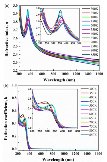 不同温度下的折射率n和消光系数k