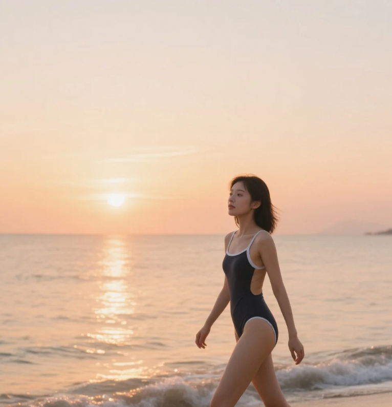 潮汐与美人的私语时刻:沙滩上的视觉诗篇
