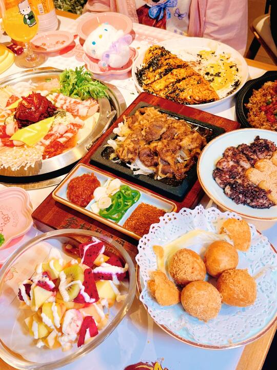 谁懂啊!推开店门看到粉粉嫩嫩的布置好可爱呀 满桌的布偶+粉色系布置暴击少女心💘 边吃韩料边拍甜妹照的快乐谁懂啊!! ✔️用布偶当道具,托腮/举高/挡脸都敲甜 ✔️穿浅色系衣服!粉色裙子和环境🈵️🈵️搭配感🌸 (偷偷说:还能换韩系服装打卡📸本1988忠粉直接泪目)