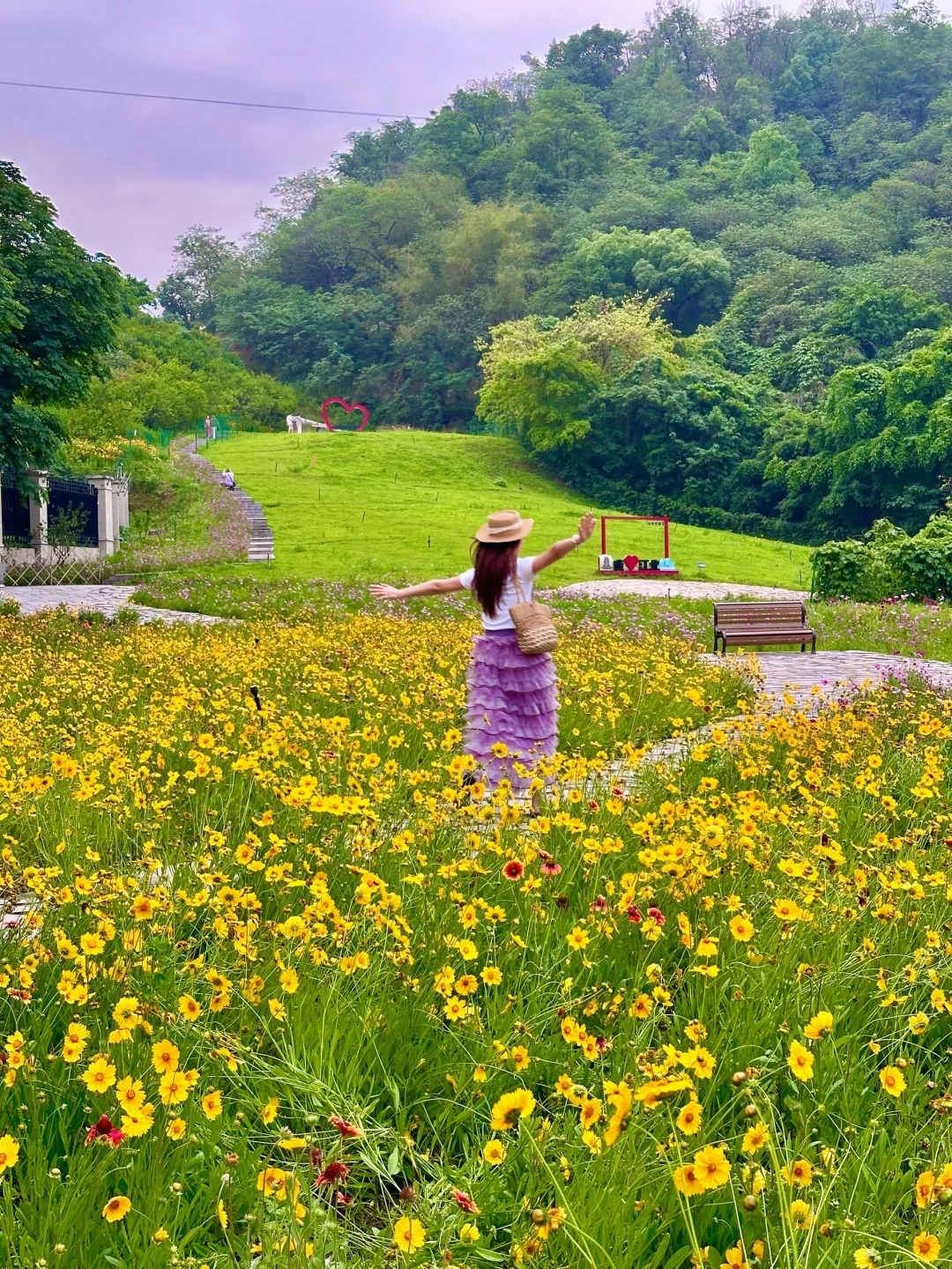 从溉澜溪二号口出来 往前一直走7分钟左右 发现这个小山坡(可能是别人小区后山?) 长满了🌼金鸡菊 真的像漫画一样好好看啊