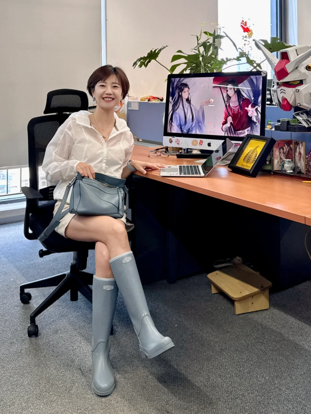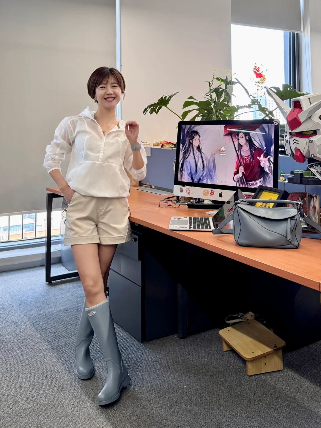 周五的轻快都是这身look给的 防晒衣+空调服+休闲外套的结合体 配上雨天专属雾霾蓝雨靴专属(这双雨靴爱死了) 处处都是搭配小心机 又是被白色和雾霾蓝硬控的一天啊 就是今天这天气穿短裤略微有点凉