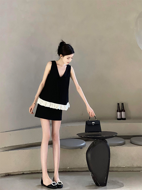 夏季贵气感千金穿搭独特漂亮气质减龄小香风高级感黑色上衣套装裙