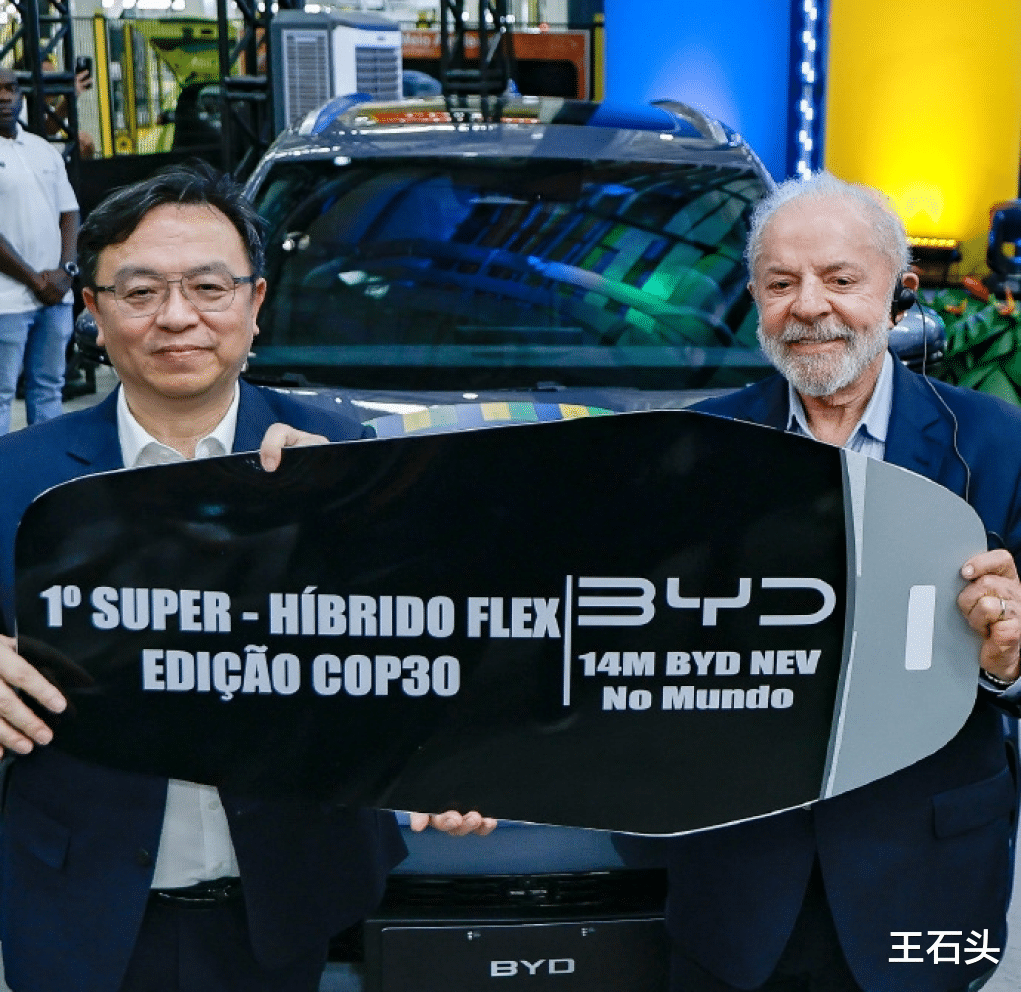 首先是比亚迪第1400万辆新能源汽车在巴西的生产基地正式下线,巴西总统卢拉亲自参与下线仪式并成为车主,比亚迪董事长王传福亲自交车。