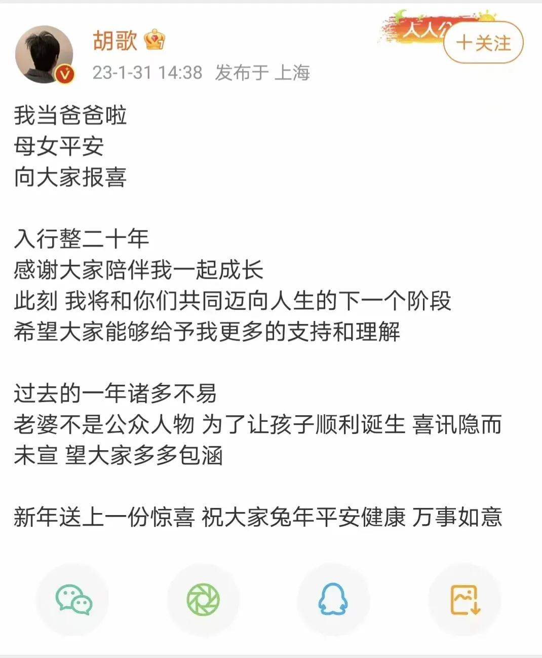 胡歌当爸爸了! 这应该是娱乐圈开年第一大瓜呀! 男神不知不觉跳过恋爱与结婚,直接