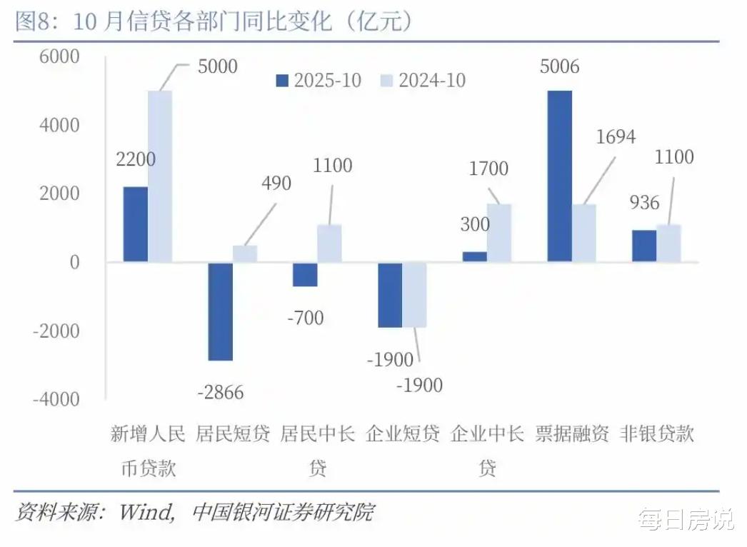 机构统计,10月单月,住户中长期贷款不仅没有增加反而是减少700亿。