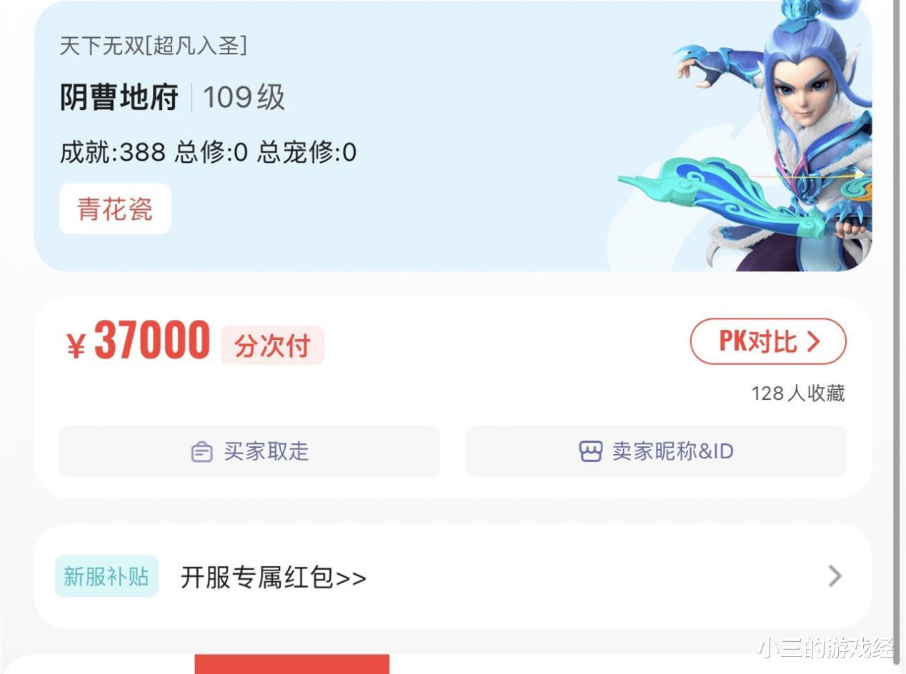小编想问一下在座的各位玩家,你们会在游戏内买一个上面的这种角色吗?这是一个109级,除了青花瓷锦衣外什么都没有的角色,这种角色没有技能,没有修炼,没有装备,没有召唤兽,除了青花瓷锦衣外,甚至是连限量祥瑞、施法特效等都没有,但是这种角色的价格却特别贵,上面的这个角色就被别人以3.7个w的价格给买走了,小编感觉买号的玩家取号后应该就后悔了吧。上面的这种角色买回去以后进行抓鬼任务的时候都很难。