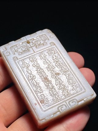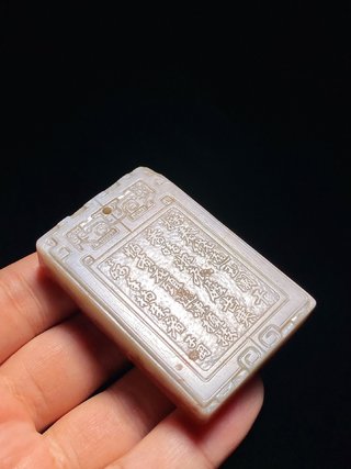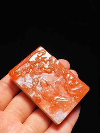 清乾隆 南红玛瑙 俏雕 踏雪寻梅 诗文牌 子冈牌 挂件 长4.1 宽1.3 高6.1厘米 重81.3克 南红玛瑙古称“赤