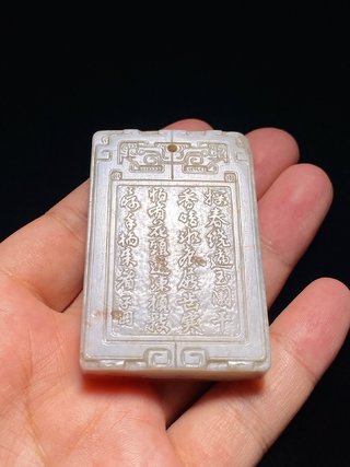 清乾隆 南红玛瑙 俏雕 踏雪寻梅 诗文牌 子冈牌