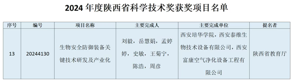 日前,陕西省人民政府公布了《关于2024年度陕西省科学技术奖励的决定》,西安培华学院医学院刘毅博士团队申报的《生物安全防御装备关键技术研发及产业化》荣获2024年度陕西省科学技术进步奖三等奖,实现了学校自然科学类政府奖项的重大突破。